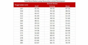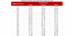 Tabel berat badan ideal menurut Kemenkes RI ini membagi rentang berat badan dan tinggi badan ke dalam tiga kategori, yakni kecil, sedang, dan besar. Kamu bisa tahu masuk kategori mana dari tabel yang ada.